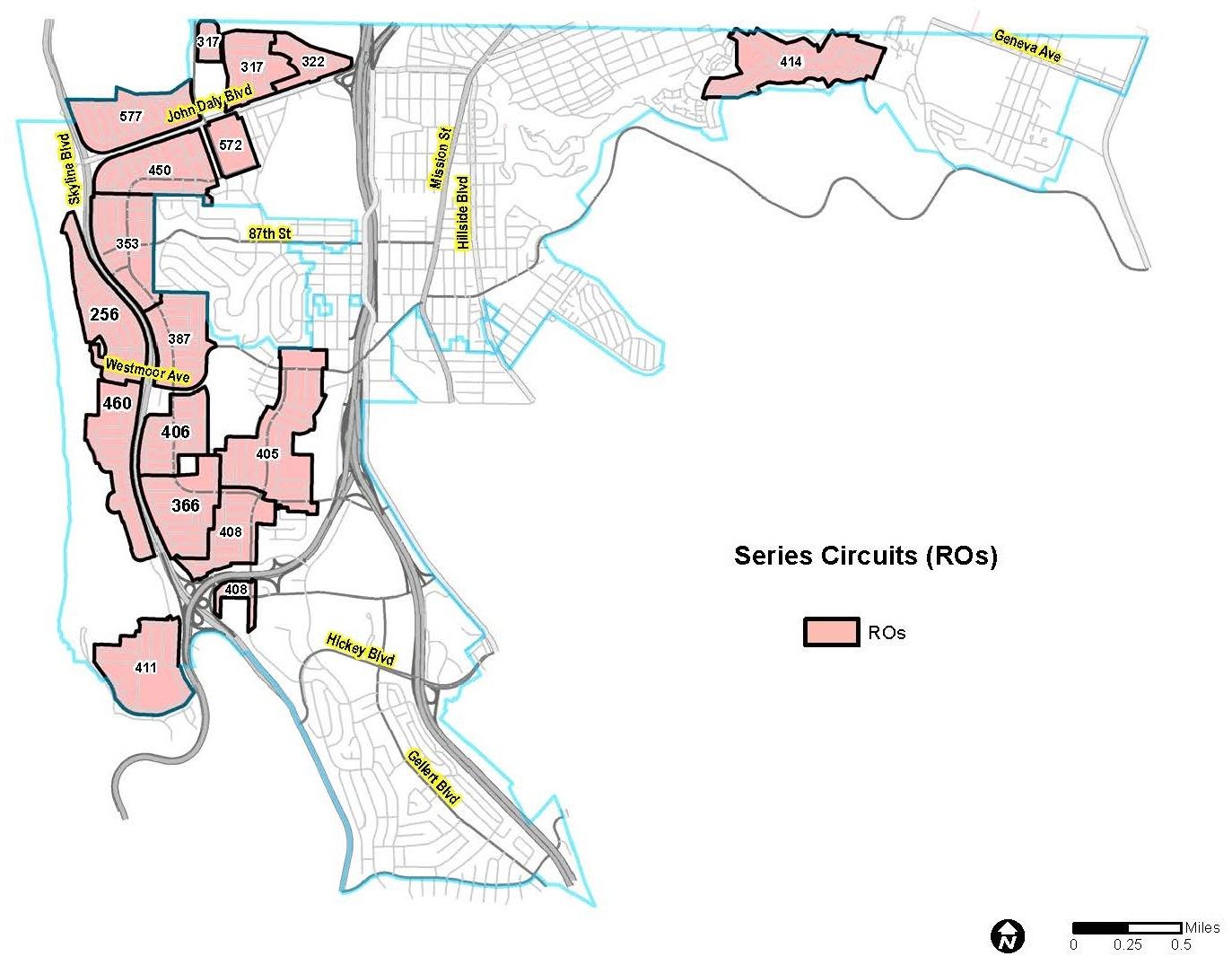 • The City owns approximately 3,310 street lights citywide. The High Voltage Regulated Output (RO) street light circuits account for 23% of the total inventory. The ROs most affected by the outages are the four located in Skyline, Palisades, Westlake, and St. Francis neighborhoods. This accounts for approximately 6% of the City’s entire street light system.